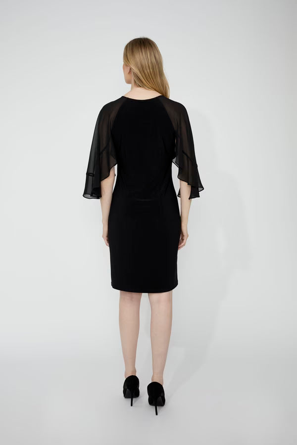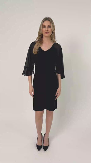 Mustassa klassisessa juhlamekossa on upeat sifonkihihat.