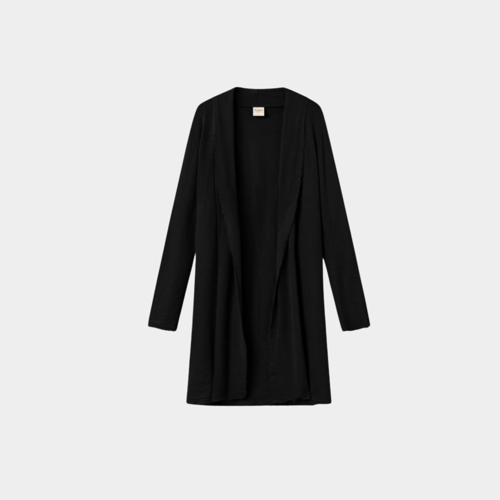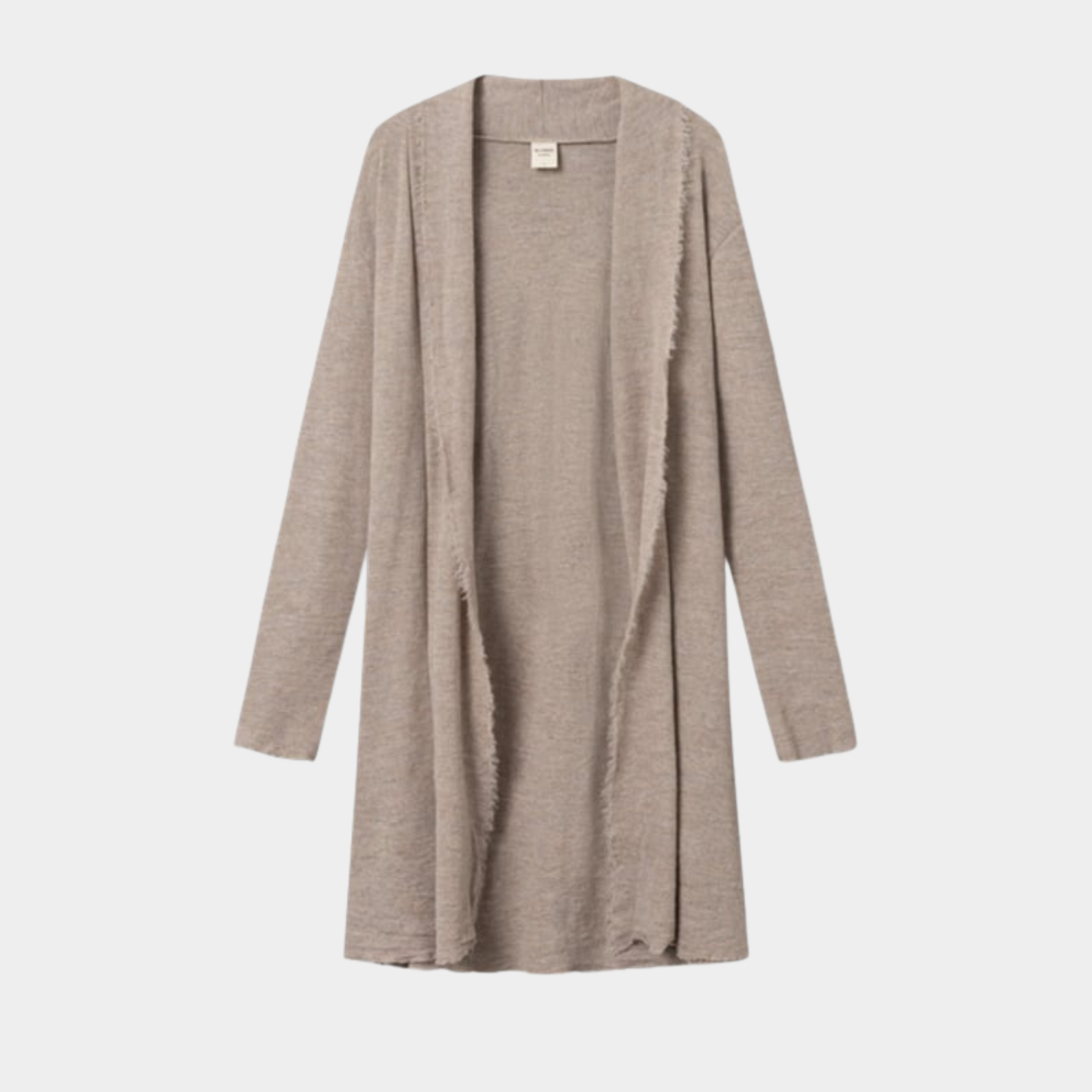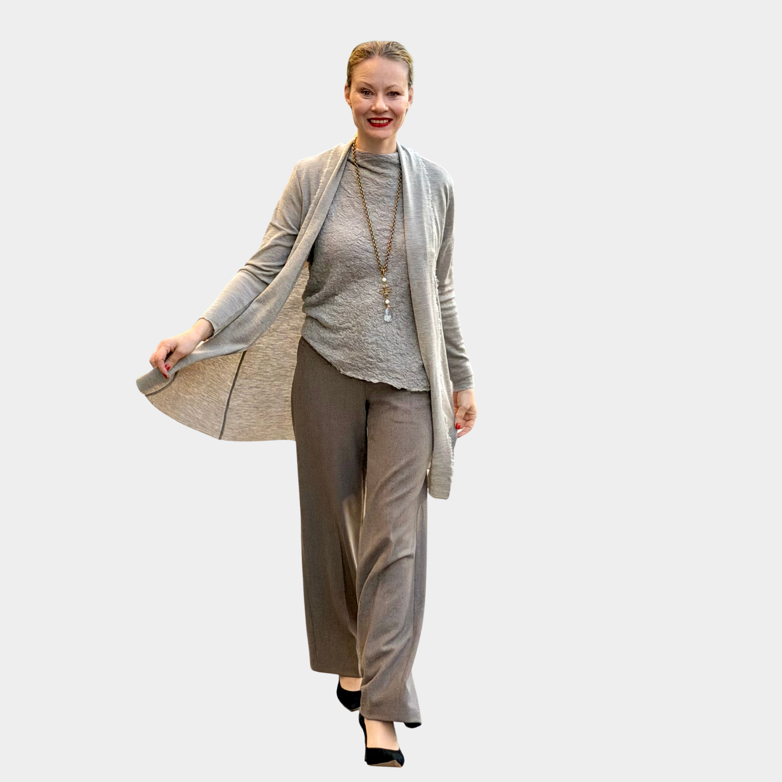 Pitkä merinovillainen neuletakki on ihanan kevyt käyttää.