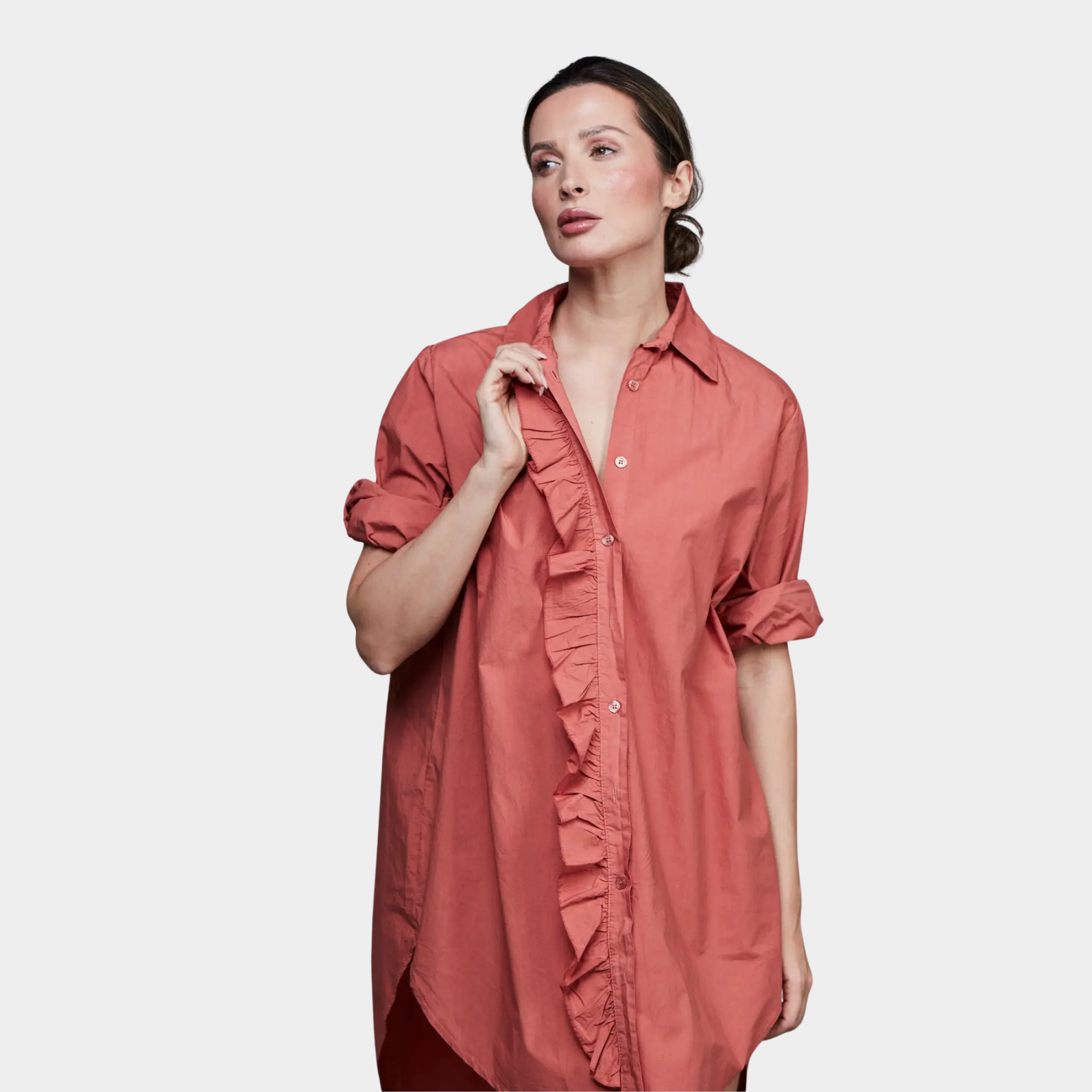 Pyöristetty pitkä helma.