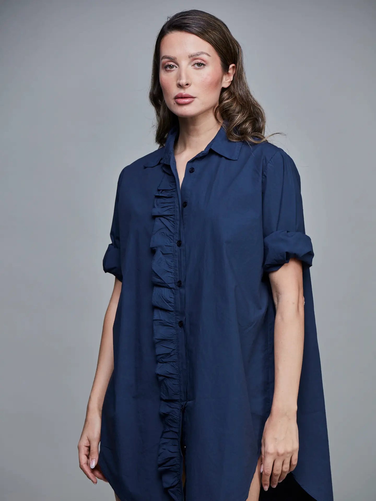Hieman ryppyistä puuvillaa, rento malli.