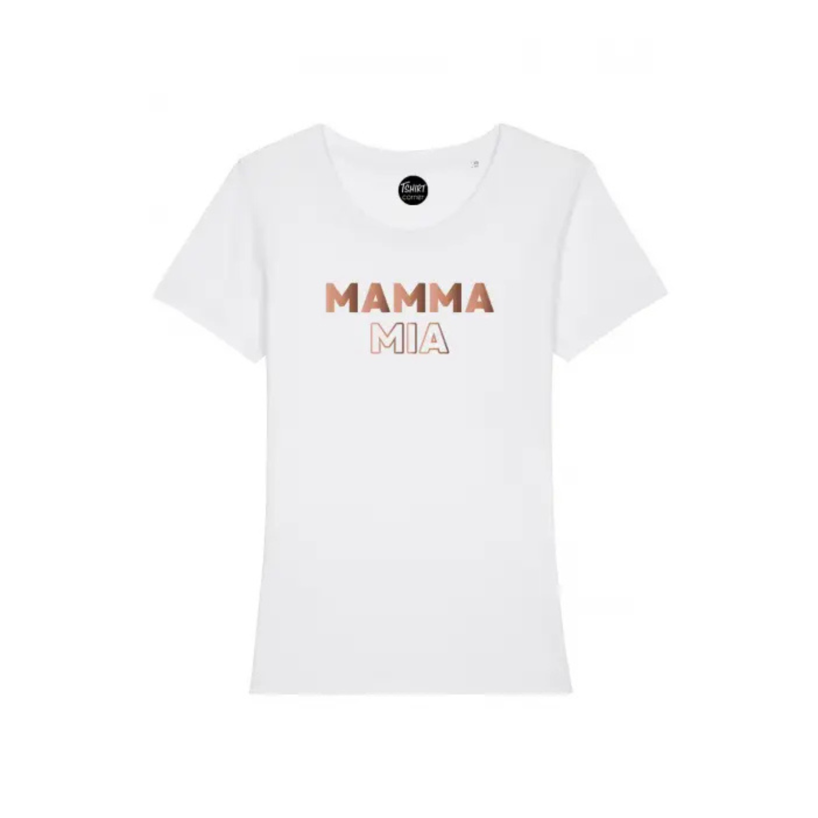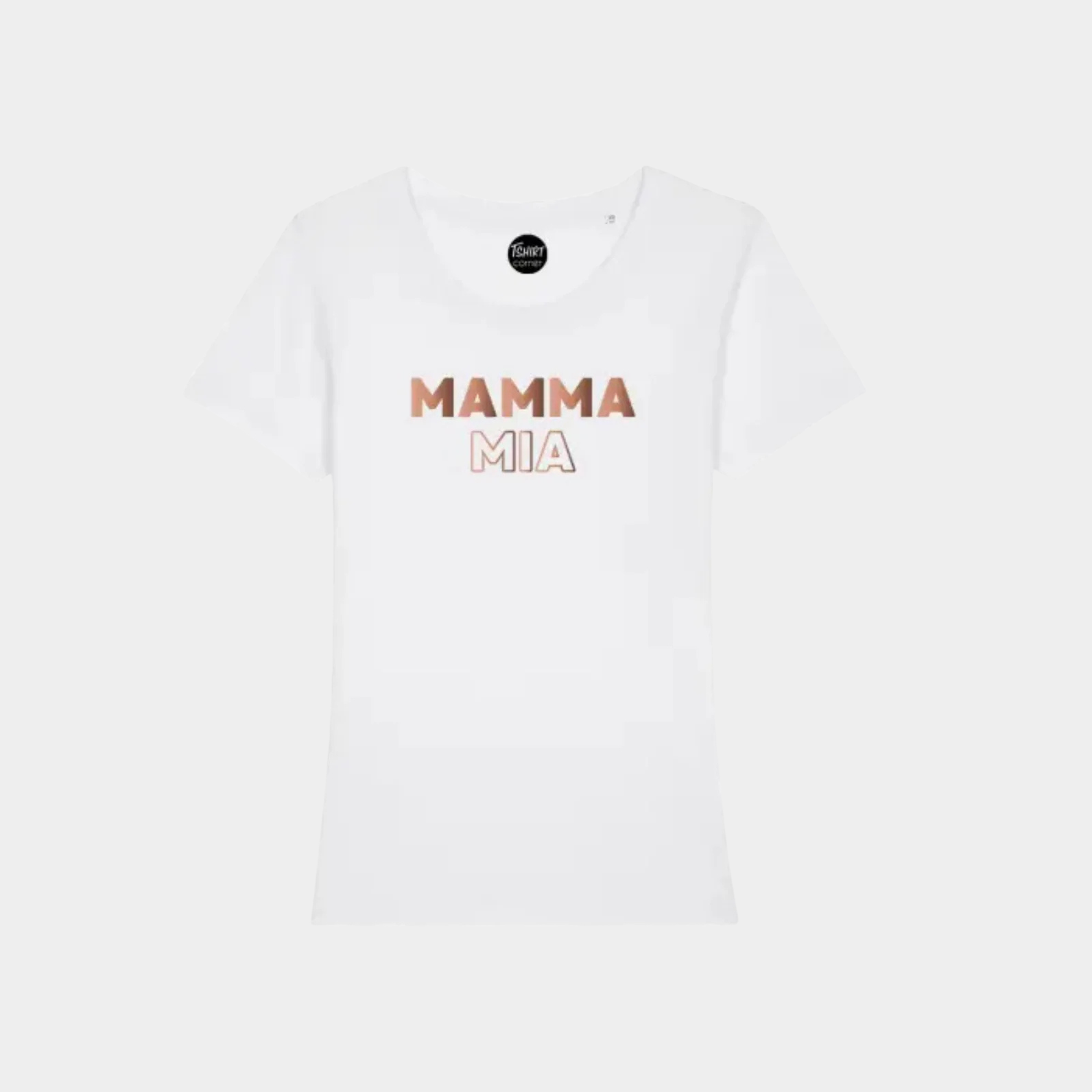 Valkoinen T-paita, ruusukullansävyisellä painatuksella