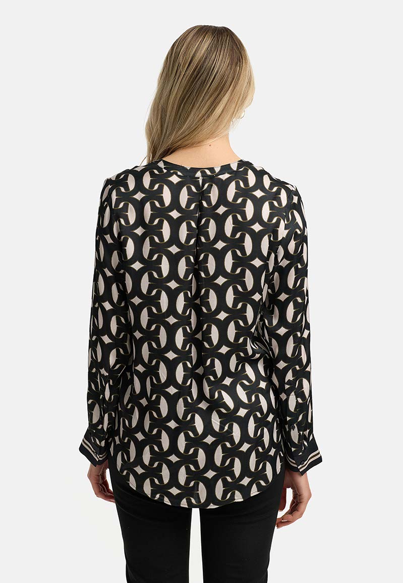 Mustalla pohjalla kitinvärinen kuosi, ripaus kaakaota mukana.